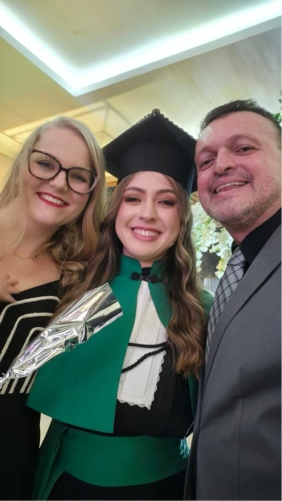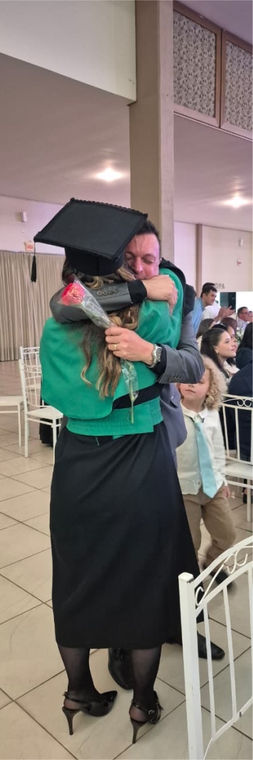 Não sei nem como começar, muito pessoal para usar outras pessoas, então preciso falar por mim mesmo. No dia em que ela nasceu era um sábado não muito frio e também não tem como não lembrar quando vou na “Upinha”. Um amigo Poeta escreveu que cantava na noite a chuva feliz e a danadinha veio só de dia. Passamos por bocados. Eu dava aula em uma escola particular em troca da vaga dela no maternal e para lá a levávamos todos os dias empurrando um carrinho de bebê e sonhando com um futuro para ela. Muita coisa aconteceu depois disso, muita água se passou por baixo dessa ponte, como se diz por aí e ela me ensinou o que é o amor eterno por um filho, com sensação de que jamais, nunca mesmo, nunquinha vai a abandonar. E agora lá estou eu, 23 anos depois, escutando o homem do microfone chamando o nome dela para a colação de grau. A emoção foi quando anunciaram a filiação da Roberta, “filha de (nome do pai), (nome da mãe), (nome da esposa do pai). Um reconhecimento especial e que marcou o momento. Por tudo isso, parabéns, Robertinha, minha “tochecha”. Que Deus abençoe sempre os teus passos, meu passarinho!