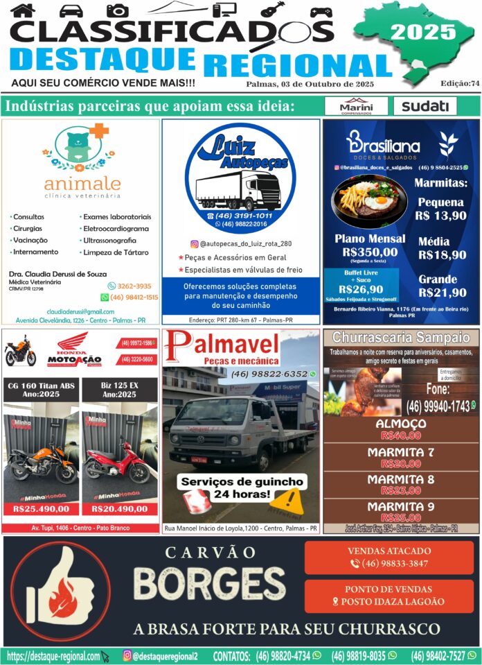 cidadesclassificadonoticiaPalmasPato Branco CLASSIFICADOS DESTAQUE REGIONAL 03/10 Por Administrador - 02/10/2025 0 3