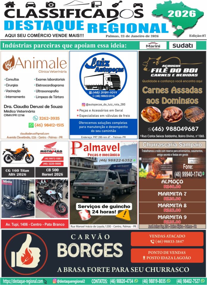 cidadesclassificadonoticiaPalmasPato Branco CLASSIFICADOS DESTAQUE REGIONAL 23/01 Por Administrador - 22/01/2026 0 18