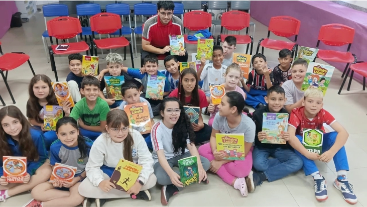 Por fim, no período da tarde, esse primeiro percurso foi encerrado com atividades de leitura na escola Nerasi Menin Calza. Os discentes Adrieli Silva Prestes, Bianca Fhynbeen Pereira, Karlyanne Gabriely Teixeira e Jorge Rodrigues realizaram a leitura do livro Bisa Bia, Bisa Bel, de Ana Maria Machado. Com uma narrativa bastante fantasiosa, o livro explora a amizade imaginária de Isabel com sua bisavó a partir de uma fotografia antiga, além de projeções imaginárias com sua futura bisneta, misturando passado, presente e futuro.