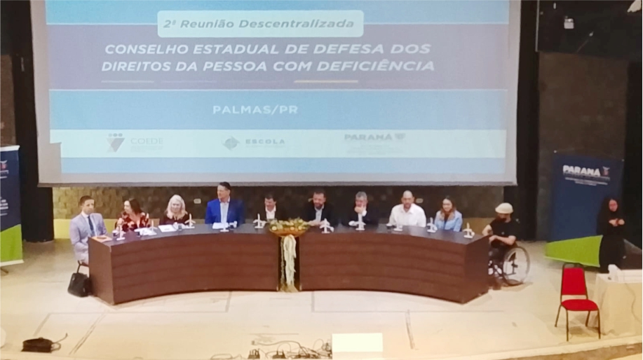 Nesta quinta, 13/11, o município de Palmas sediou a 2ª Reunião Descentralizada do Conselho Estadual dos Direitos da Pessoa com Deficiência, um importante espaço de diálogo, troca de experiências e fortalecimento das políticas públicas voltadas à inclusão e à promoção dos direitos das pessoas com deficiência. Organizado pela Secretaria Municipal de Assistência Social, da Mulher e da Pessoa Idosa, o encontro contou com a presença do Secretário Estadual de Desenvolvimento Social e Família, Rogério Carboni, além de autoridades regionais, conselheiros, gestores públicos e o prefeito de Palmas, Daniel Langaro, que reforçaram, juntos, o compromisso com a construção de uma sociedade mais justa e acessível. Os discursos das autoridades foram no sentido de que “este evento representa um marco para o município e para o Estado do Paraná”, reafirmando a importância da participação social e da cooperação entre os diferentes níveis de governo na defesa dos direitos e na valorização das pessoas com deficiência.