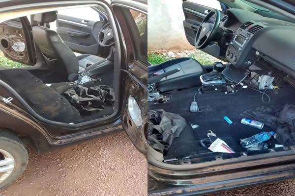 Os Policiais ao chegar ao local encontraram o veículo com apenas o banco do motorista, e estava equipado com um rádio transceptor que copia a frequência policial. O veículo não apresentava alerta de furto ou roubo. O veículo e o rádio foram apreendidos e encaminhados ao destacamento da Polícia Militar, para providencias cabíveis. O condutor do VW/Jetta não foi identificado e provavelmente estava utilizando o veículo no transporte de cigarros na região.